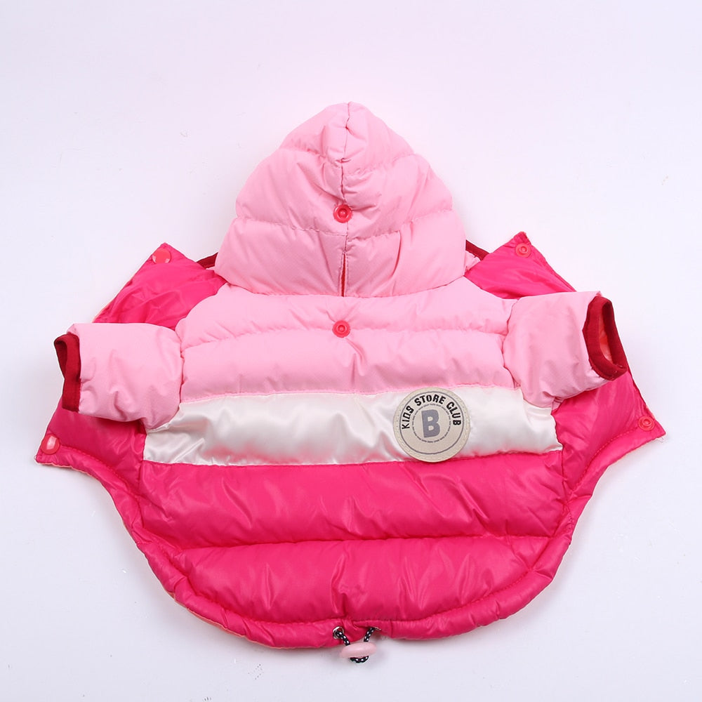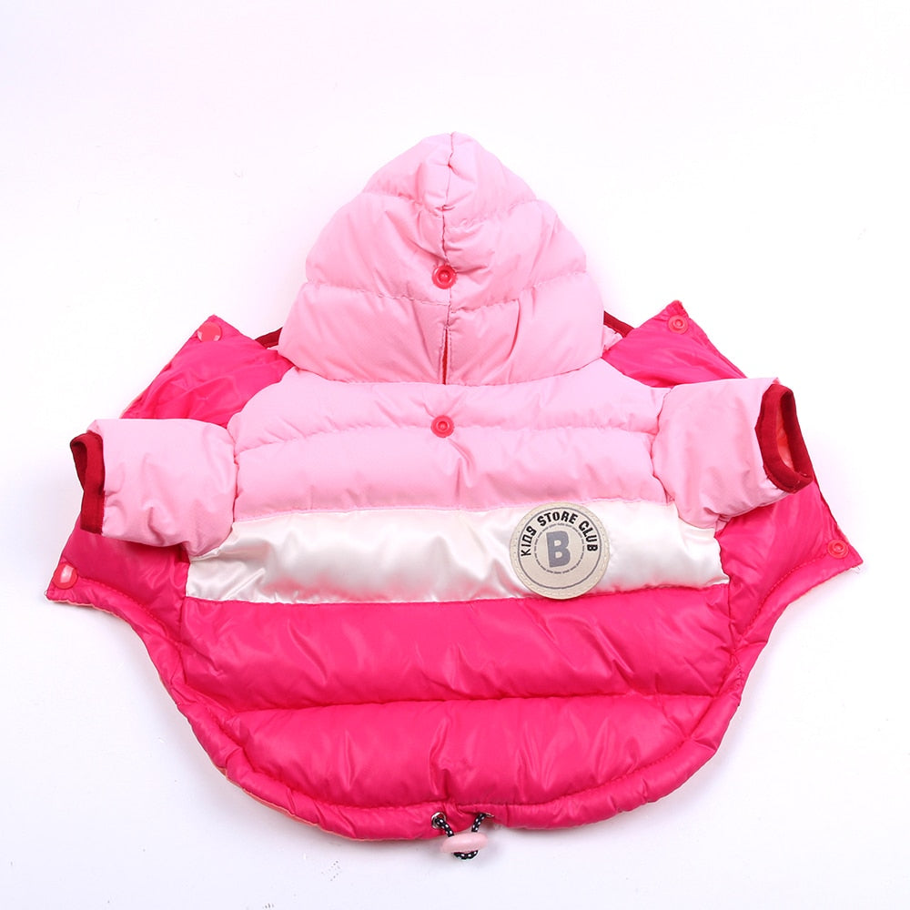 Delizioso caldo piumino con cappuccio per lui e per lei. Per cani, gatti e animali domestici.